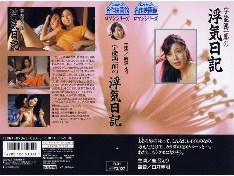 宇能鴻一郎の浮気日記(141nkt122)は、鹿沼えり 安西エリ 江崎和代 あららぎ裕子 佐藤弥生 森みどり 野崎己代が出演、白井伸明が監督、にっかつロマンポルノが制作、2004-07-01発売の成人映画です。